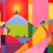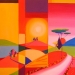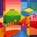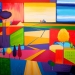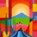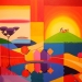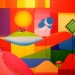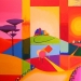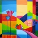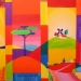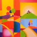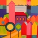 Gemaakt voor de 1e verjaardag van mijn (stief) kleindochter. Kleurrijk fantasielandschap verdeeld in kleurvlakken