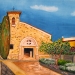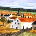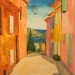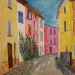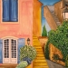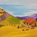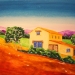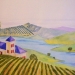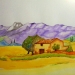 Kleurrijk aquarel van een Frans landschap (Provence) met huis/boerderij en lavendelveld. Inclusief certificaat van echtheid